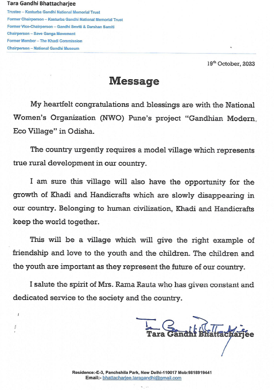 Blessings from Smt. Tara Gandhi Bhattacharjee
