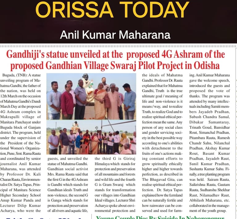 We are happy to share that we have chosen Manitara Panchayat, Aska Parliamentary Constituency, Odisha, as our first pilot project to do an experiment to test the Gandhian claim about the importance of village swaraj in the context of our present very grave global ecological crises. In the second phase, we will launch a project each in Maharashtra, Uttarakhand, Uttar Pradesh, Bihar, and other states.