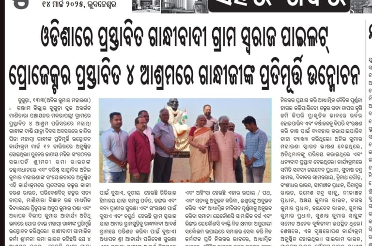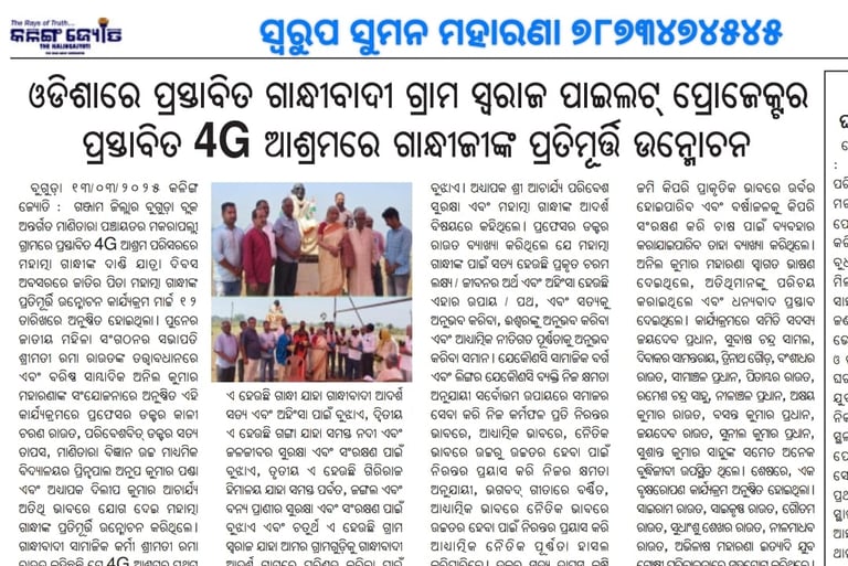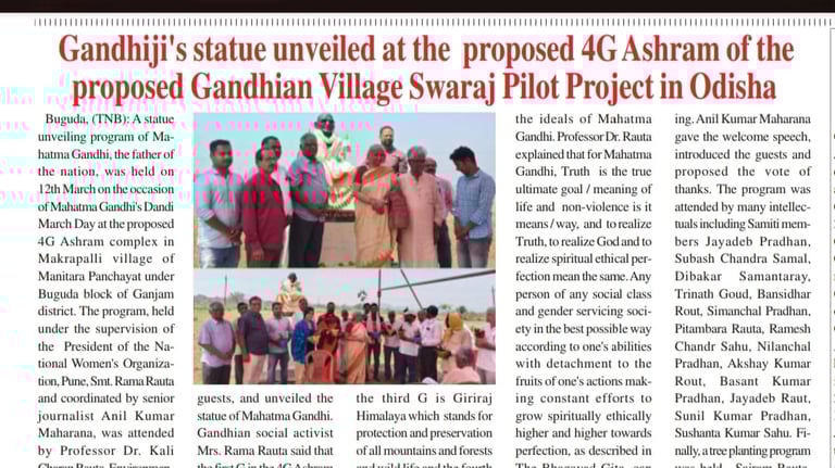 A statue unveiling program of Mahatma Gandhi, the father of the nation, was held on 12th March 2025 on the occasion of Mahatma Gandhi's Dandi March Day at the proposed 4G Ashram complex in Makrapalli village of Manitara Panchayat under Buguda block of Ganjam district.
